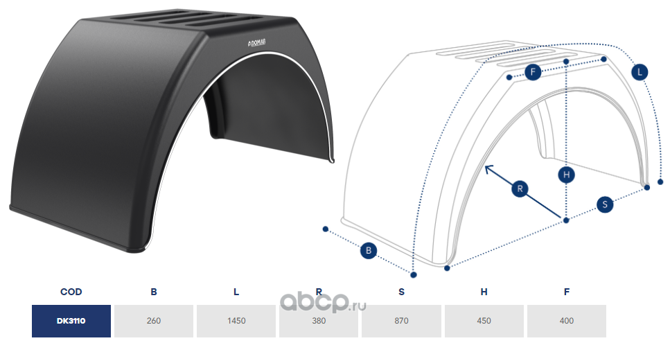 | DOMAR | DK3110 | Крыло пластиковое с белой линией 260х1450х880х380 (для малотоннажных ТС) (крепеж отдельно см. | ||
