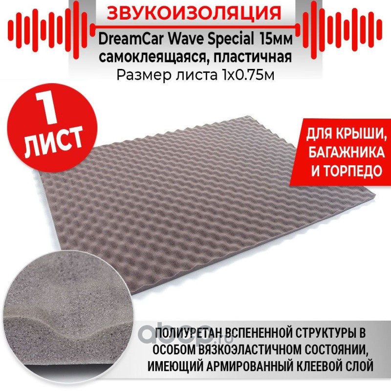 | DREAMCAR TECHNOLOGY | WS15MS075100 | Звукопоглощающий материал DreamCar Wave Special 15 | ||