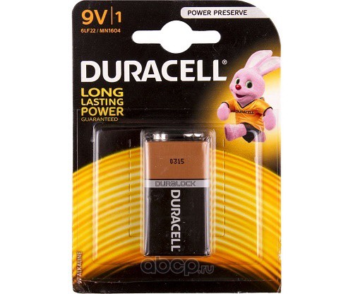 | DURACELL | 6LF22MN1604BL1 | Батарейка алкалиновая Крона 9 В упаковка 1 шт. | ||