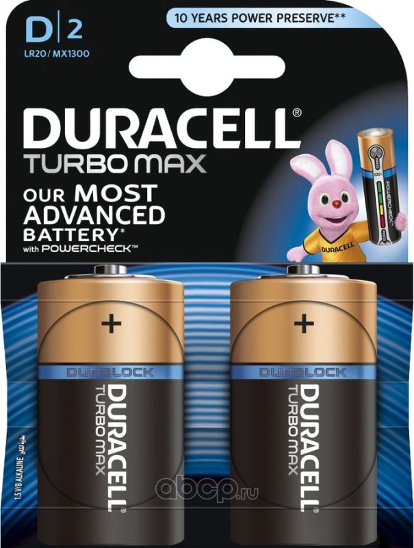 | DURACELL | 0052001232 | Батарейка DURACELL TURBO MAX D 1.5V LR20 | ||