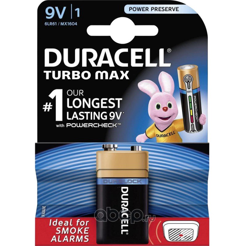 | DURACELL | 0052001233 | Батарейка DURACELL TURBO MAX 9V 6LR61 | ||