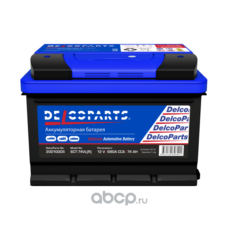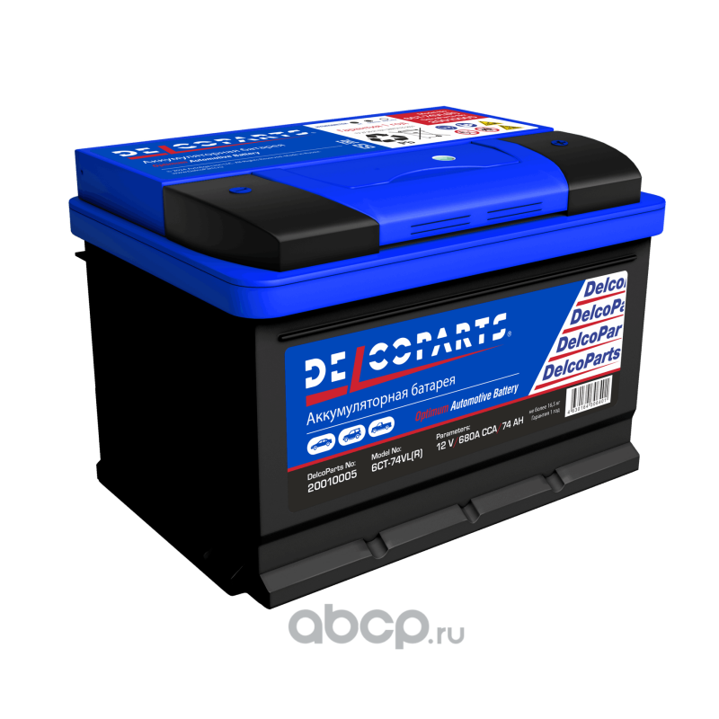 | DelcoParts | 20010005 | Батарея аккумуляторная 74А/ч 680А обратная полярн. стандартные (Европа) клеммы | ||