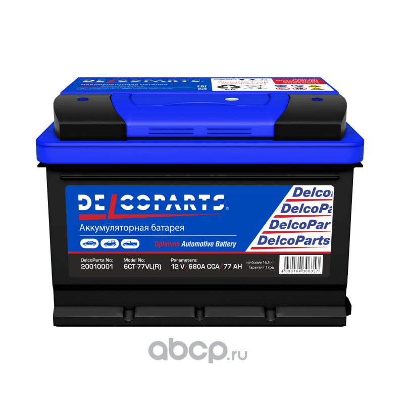 | DelcoParts | 20010001 | Батарея аккумуляторная 77А/ч 680А обратная полярн. стандартные (Европа) клеммы | ||