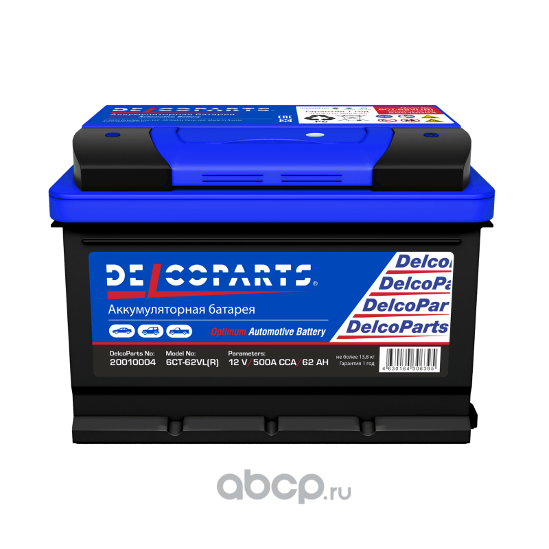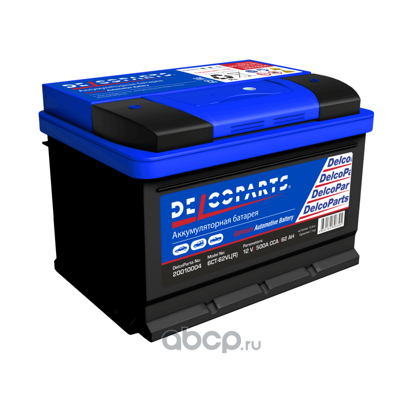 | DelcoParts | 20010004 | Батарея аккумуляторная 62А/ч 500А обратная полярн. стандартные (Европа) клеммы | ||
