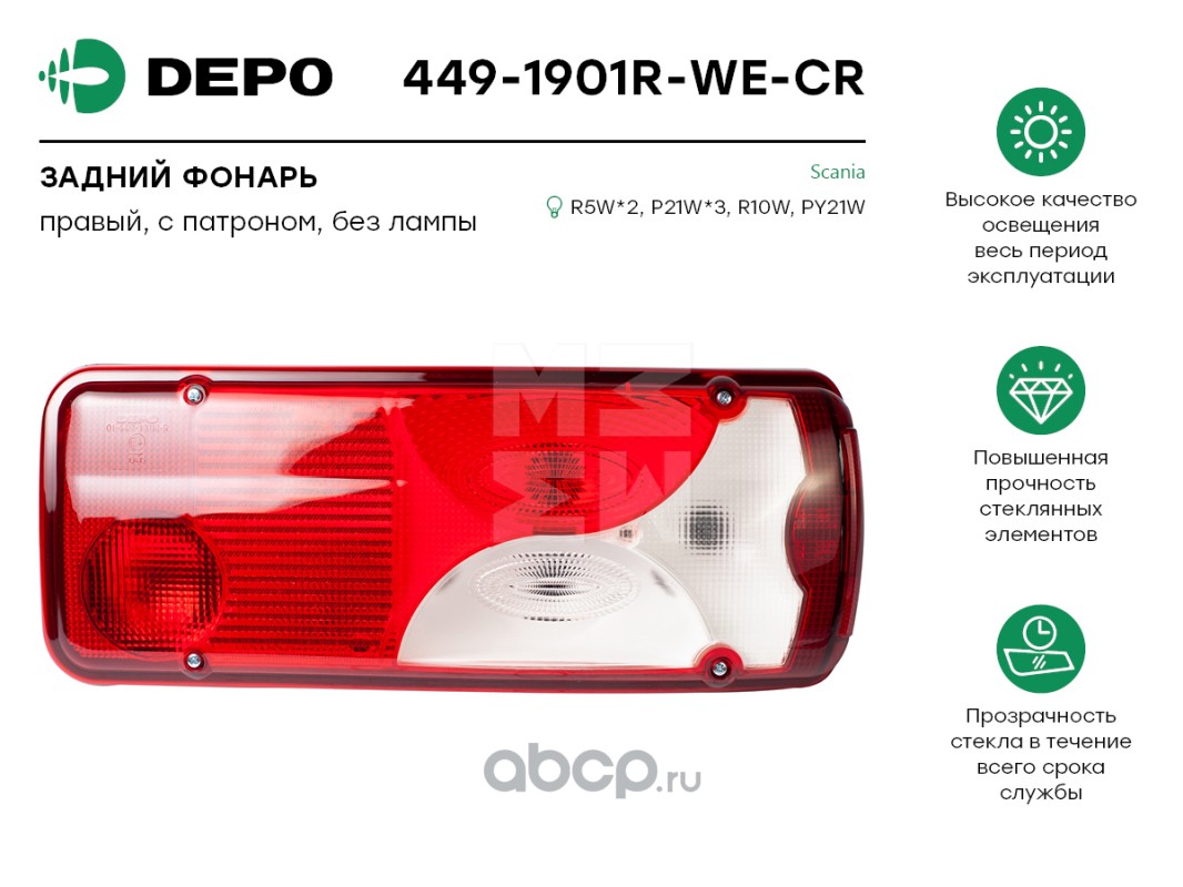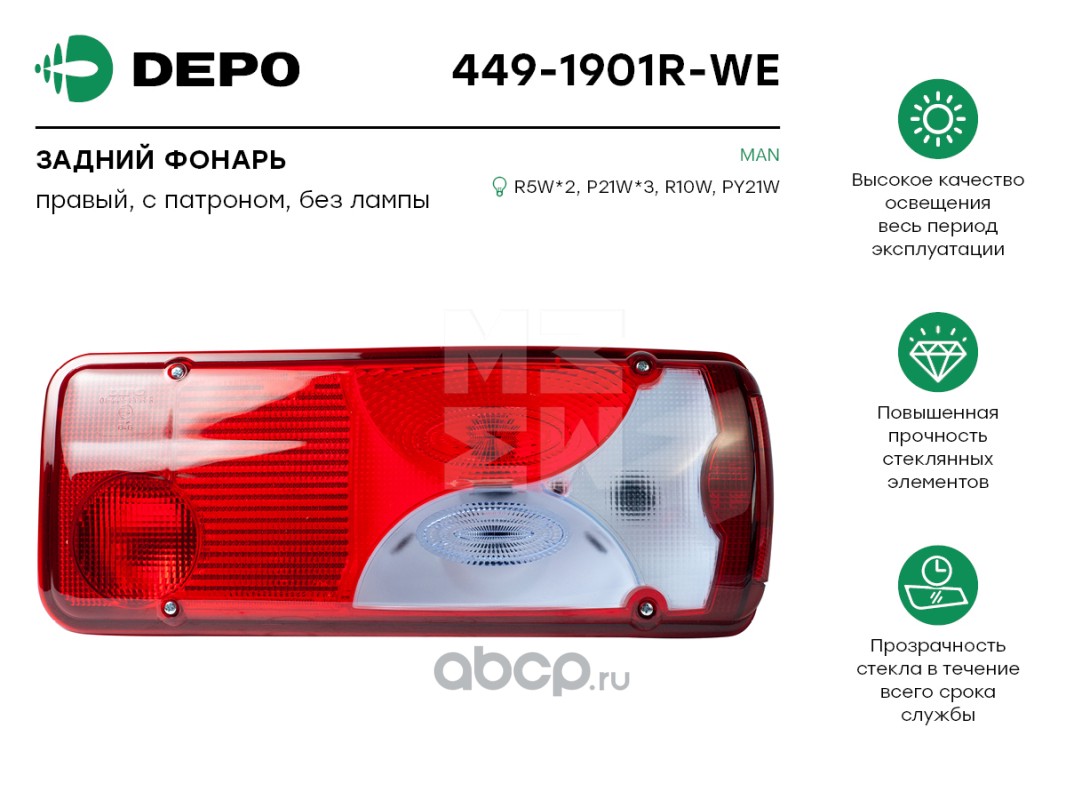 | Depo | 4401941RLDWE | ACTROS '96- {03-/08-} ФОНАРЬ ЗАДН ВНЕШН ПРАВ (DEPO) | ||