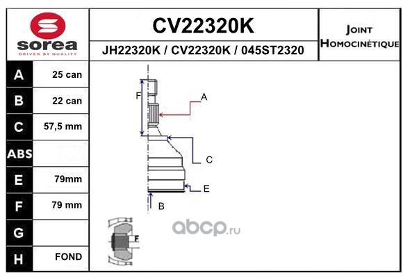 | EAI GROUP | CV22320K | Шарнирный комплект, приводной вал | ||