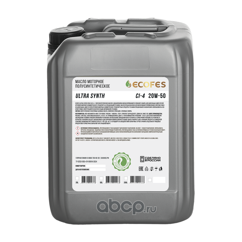 | ECOFES | EFM22018 | Масло моторное полусинтетика ECOFES Ultra Synth 20W-50 CI-4 20 л. | ||