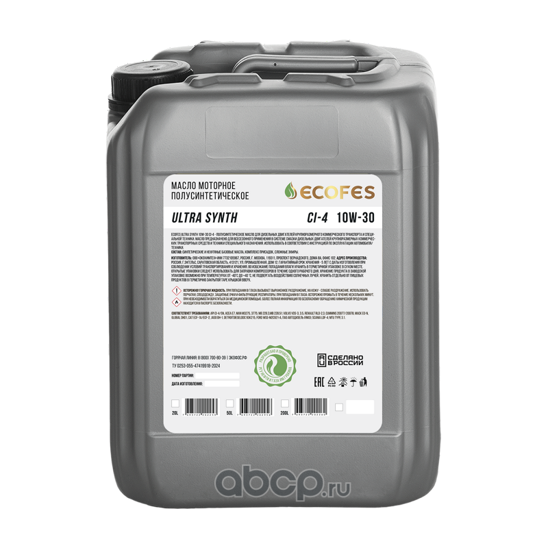 | ECOFES | EFM22003 | Масло моторное полусинтетика ECOFES Ultra Synth 10W-30 CI-4 20 л. | ||