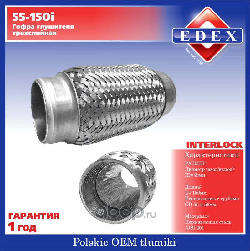 | EDEX | 55150I | Гофра глушителя трехслойная усиленная InterLock | ||