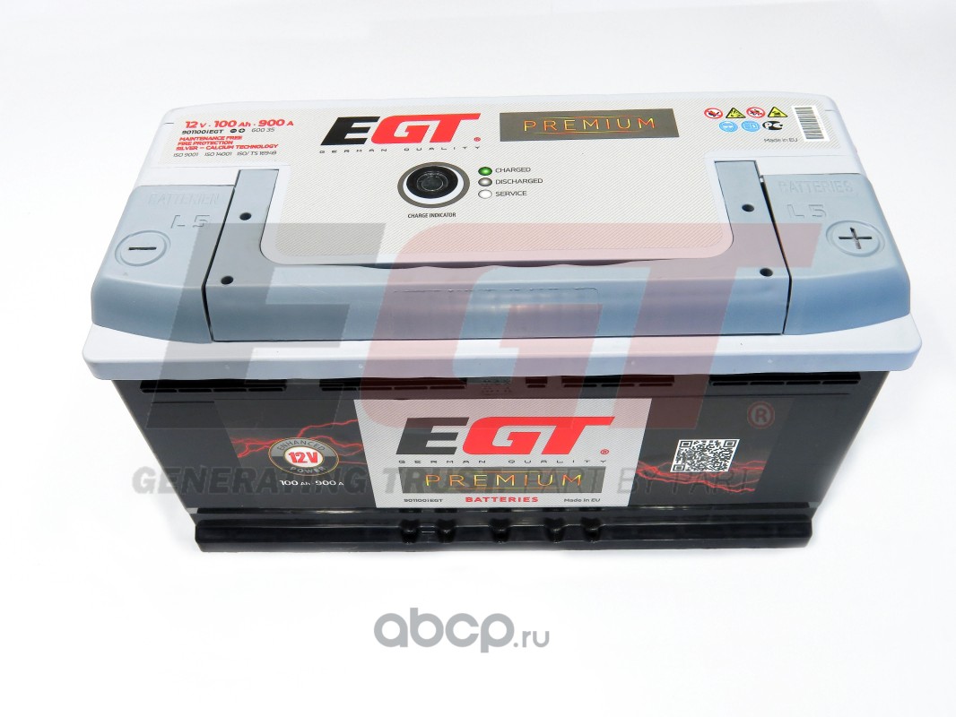| EGT | 901100IEGT | Аккумулятор PREMIUM 100Ah CC(EN):900A -/+ 350x175x190mm (3-jų metų garantija) | ||