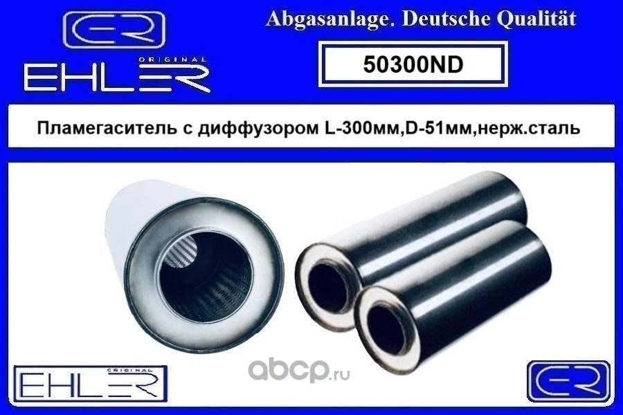 | EHLER | 50300ND | Пламегаситель с диффузором L-300мм,D-51мм,нерж. | ||