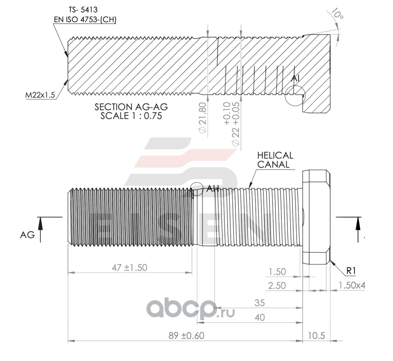 EISEN EIW0801001 Болт колеса M22x1,5х89/54 BPW ECO-Plus