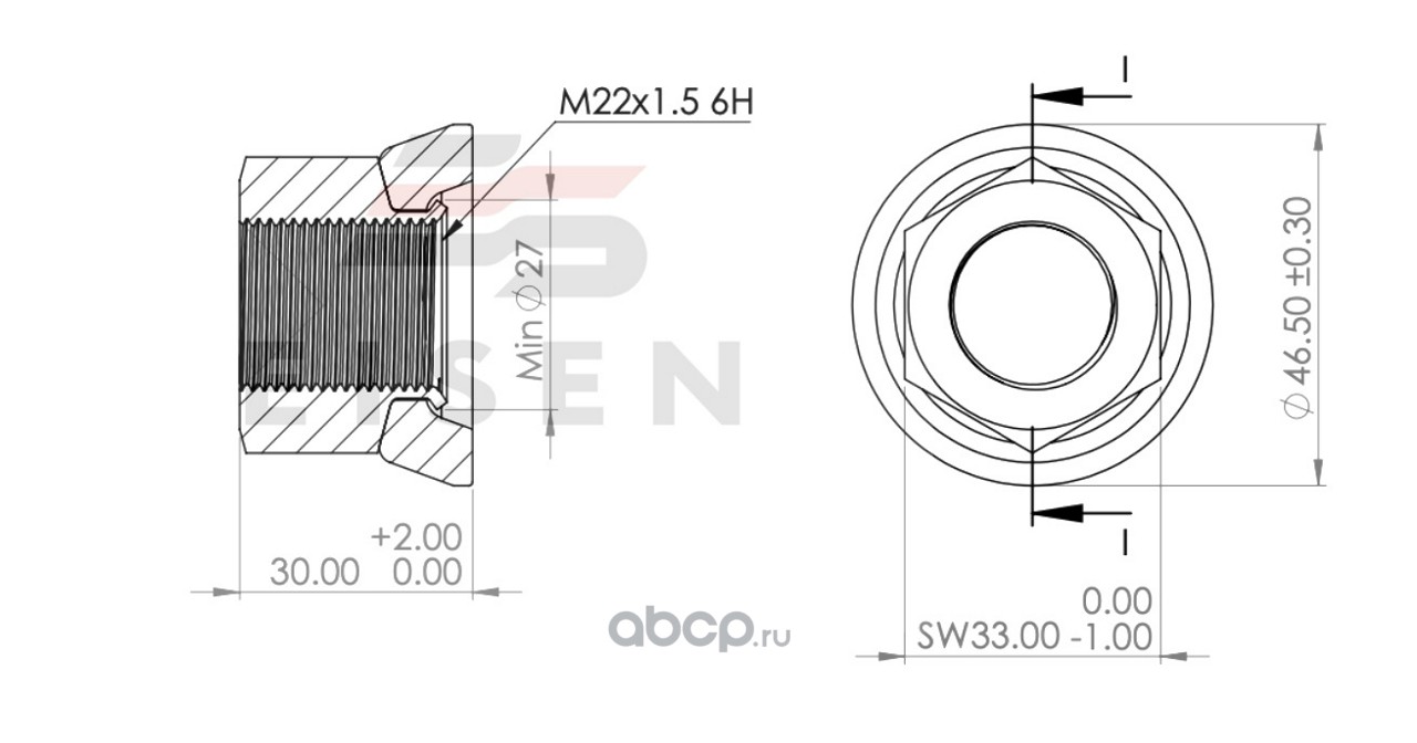 EISEN EIW0801004 Гайка колесная с вращ. юбкой M22x1.5 SW33 H=30 Volvo/RVI