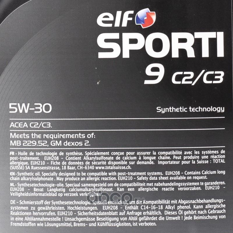 | ELF | 214253 | Масло моторное синтетика ELF SPORTI 9 C2/C3 5W-30 5 л. | ||