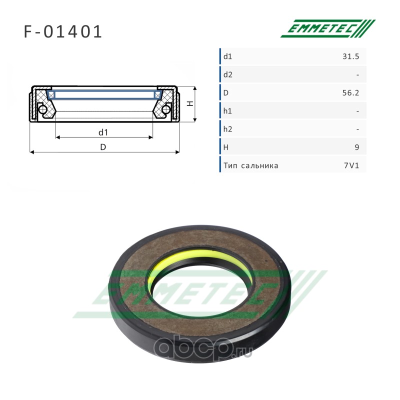 | EMMETEC | F01401 | Сальник рулевой рейки 31.5*56.2*9 (7V1) | ||