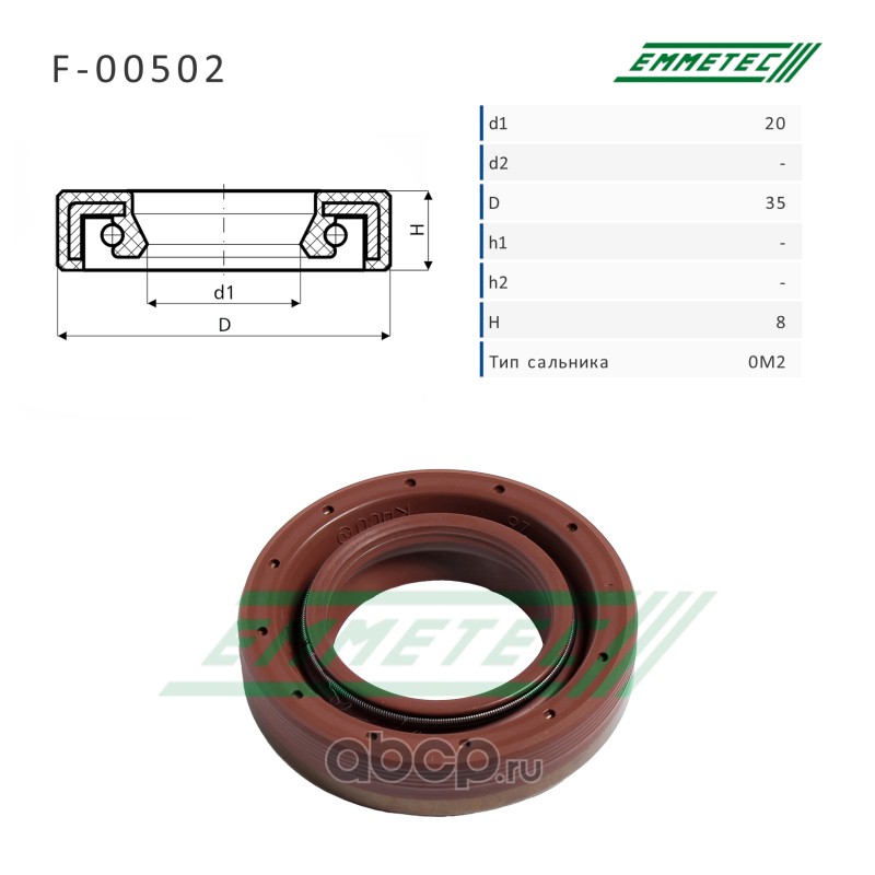 | EMMETEC | F00502 | Сальник рулевой рейки 20*35*8 (0M2) | ||