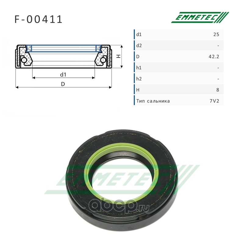 | EMMETEC | F00411 | Сальник рулевой рейки 25*42.2*8 (7V2) | ||