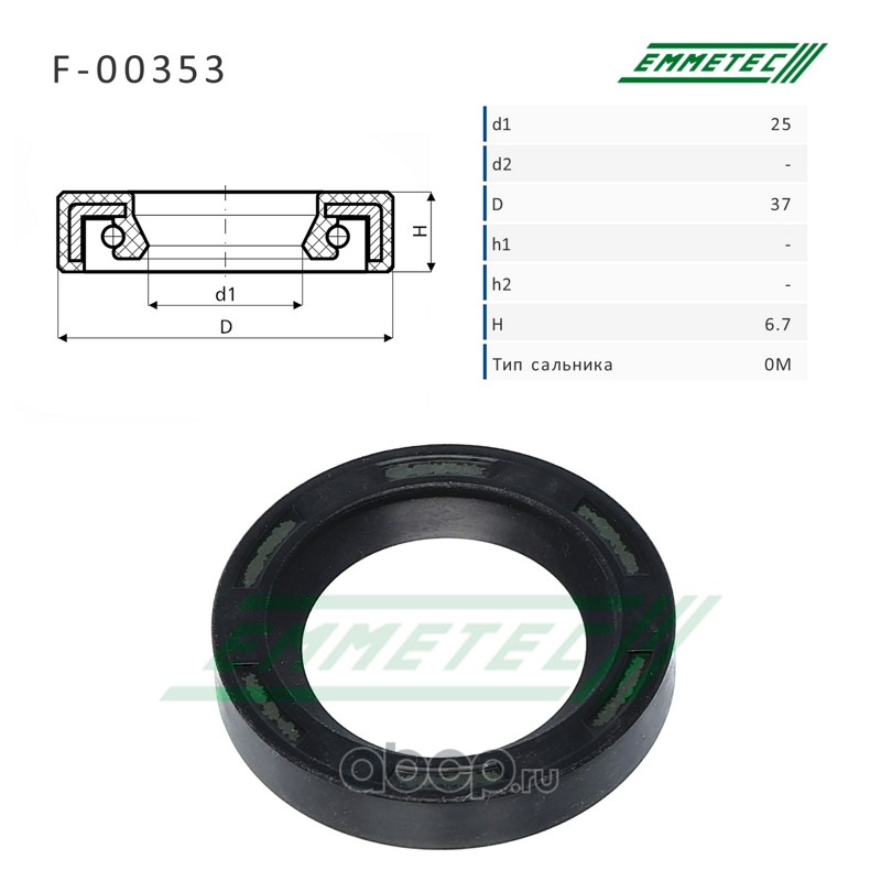 | EMMETEC | F00353 | Сальник рулевой рейки 25*37*6.7 (0M) | ||