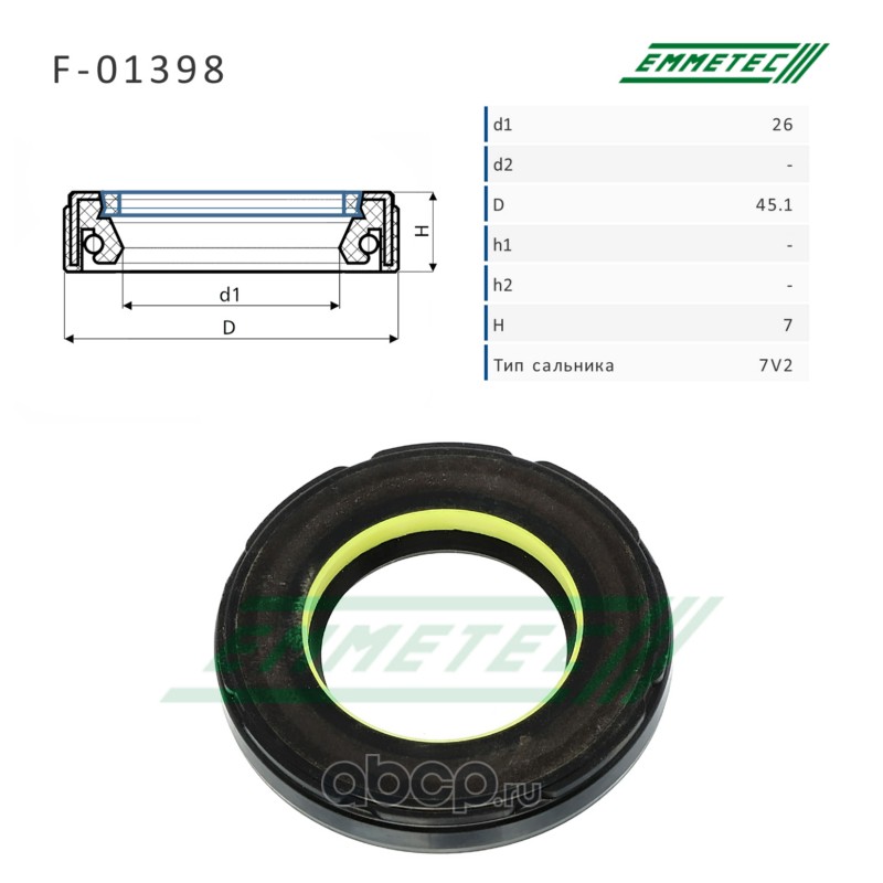 | EMMETEC | F01398 | Сальник рулевой рейки 26*45.1*7 (7V2) | ||