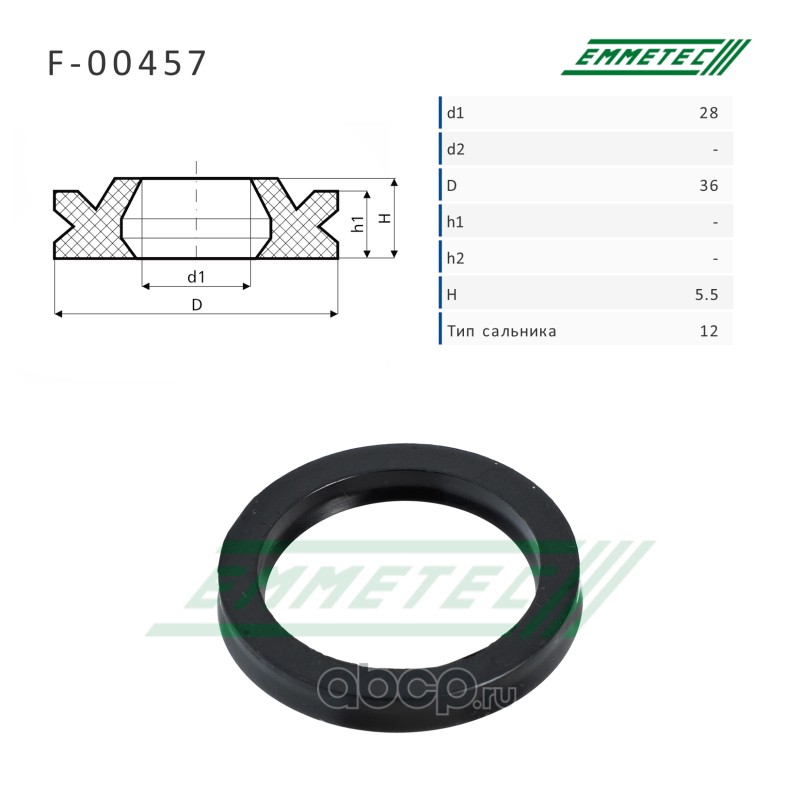 | EMMETEC | F00457 | Сальник рулевой рейки 28*36*5.5 (12) | ||