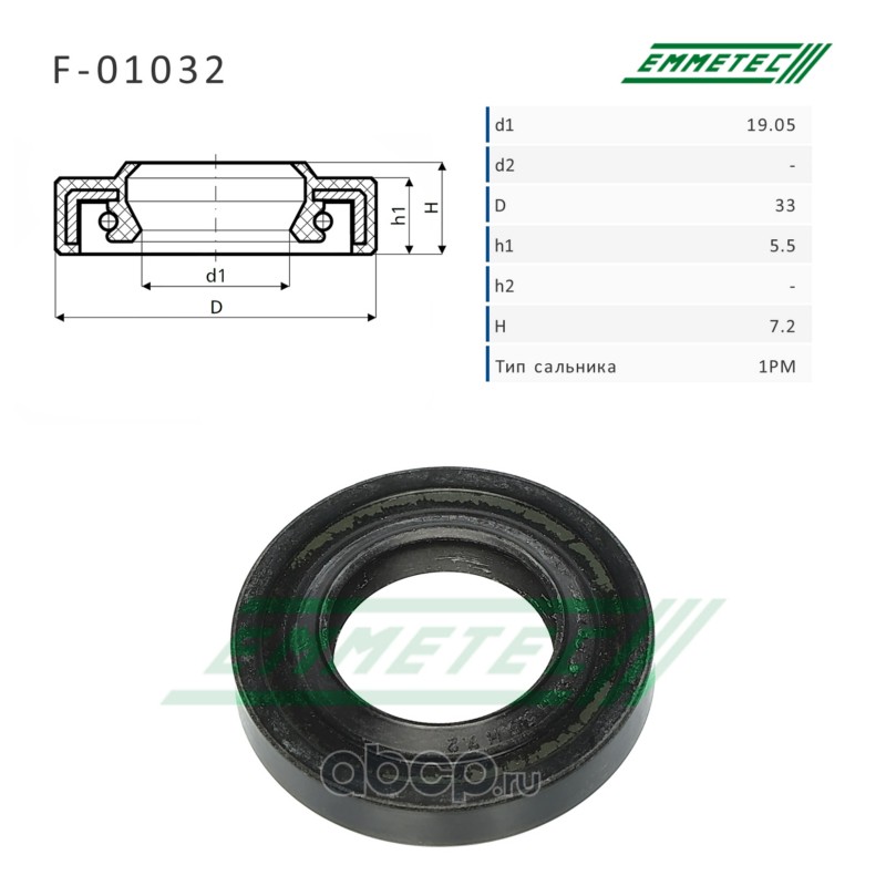 | EMMETEC | F01032 | Сальник рулевой рейки 19.05*33*5.5/7.2 (1PM) | ||