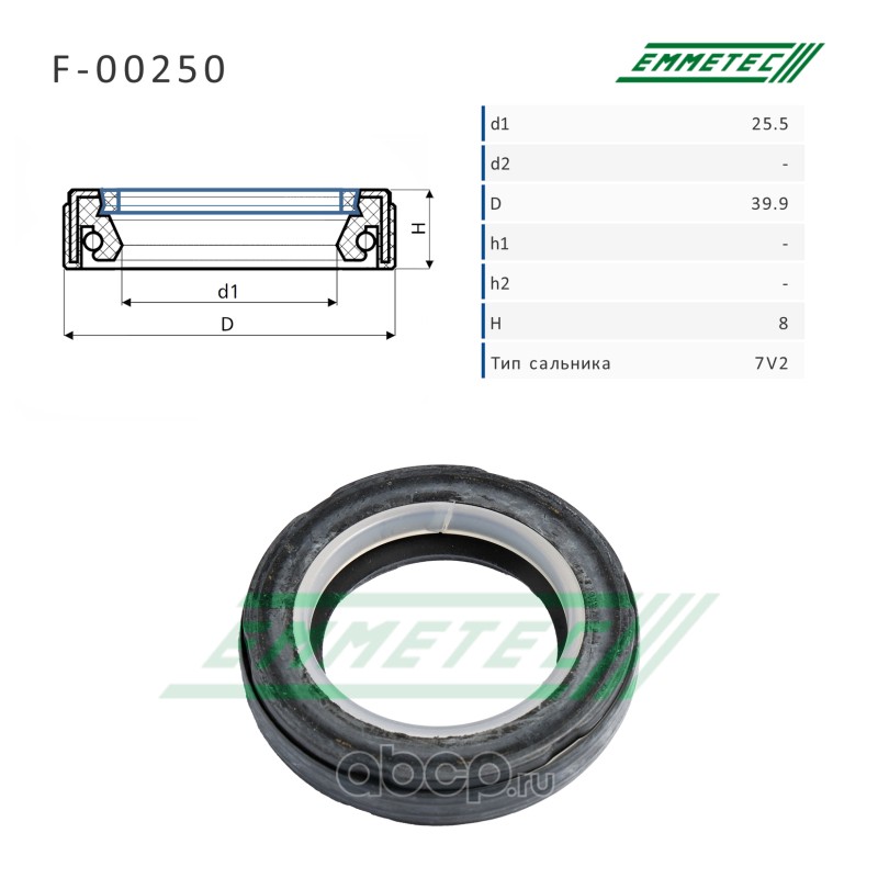 | EMMETEC | F00250 | Сальник рулевой рейки 25.5*39.9*8 (7V2) | ||