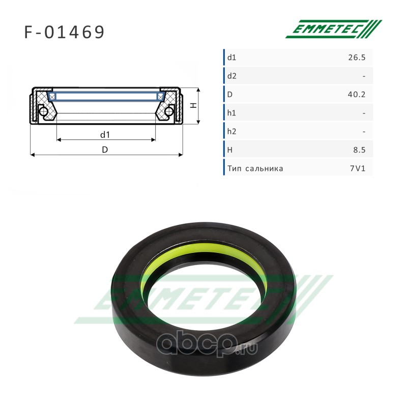 | EMMETEC | F01469 | Сальник рулевой рейки 26.5*40.2*8.5 (7V1) | ||
