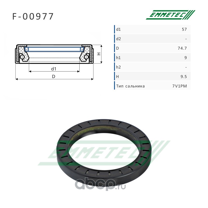 | EMMETEC | F00977 | Сальник рулевой рейки 57*74.7*9/9.5 (7V1PM) | ||