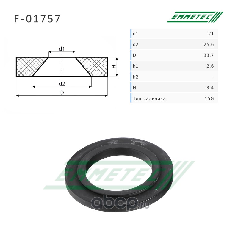 | EMMETEC | F01757 | Сальник рулевой рейки 21*25.6/33.7*2.6/3.4 (15G) | ||