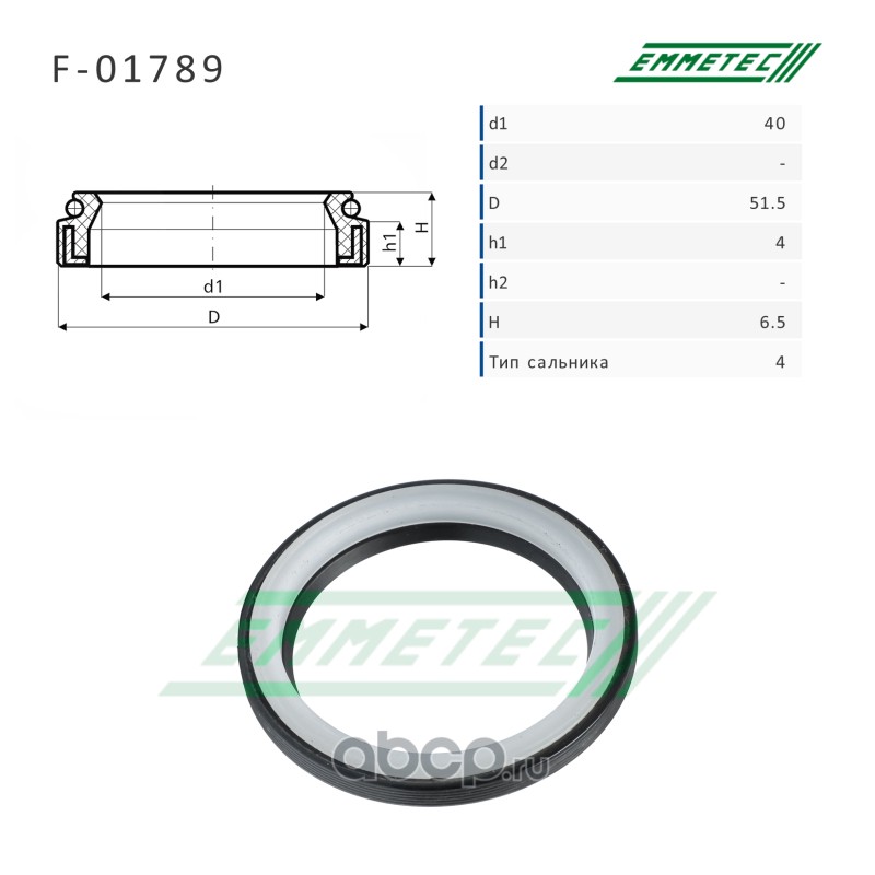 | EMMETEC | F01789 | Сальник рулевой рейки 40*51.5*4/6.5 (4) | ||