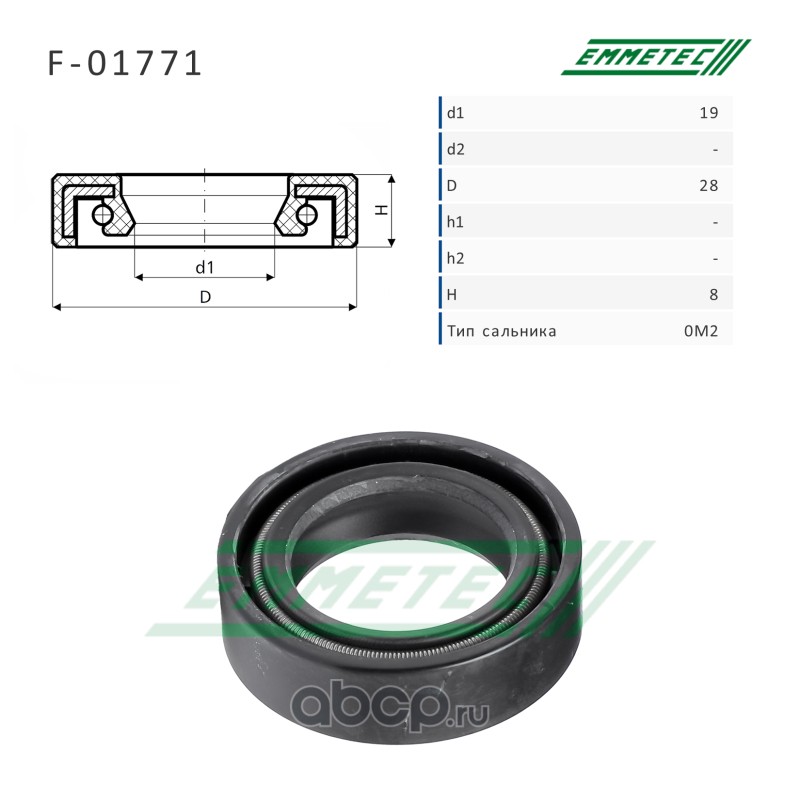 | EMMETEC | F01771 | Сальник рулевой рейки 19*28*8 (0M2) | ||