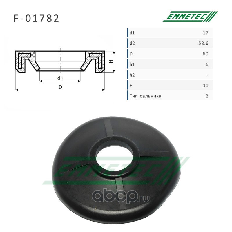 | EMMETEC | F01782 | Верхний защитный колпачок рулевой рейки 17*58.6/60*6/11 (2) | ||