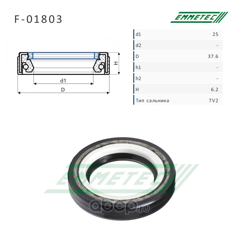 | EMMETEC | F01803 | Сальник рулевой рейки 25*37.6*6.2 (7V2) | ||
