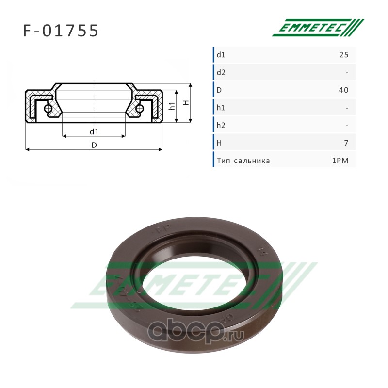 | EMMETEC | F01755 | Сальник рулевой рейки 25*40*7 (1PM) | ||