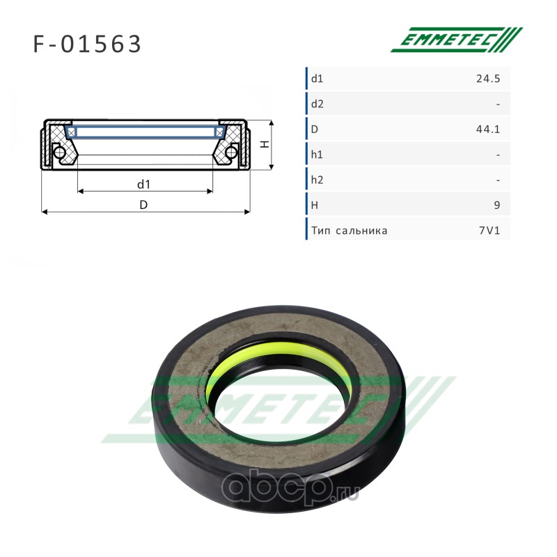 | EMMETEC | F01563 | Сальник рулевой рейки 24.5*44.1*9 (7V1) | ||