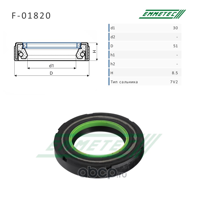 | EMMETEC | F01820 | Сальник рулевой рейки 30*51*8.5 (7V2) | ||