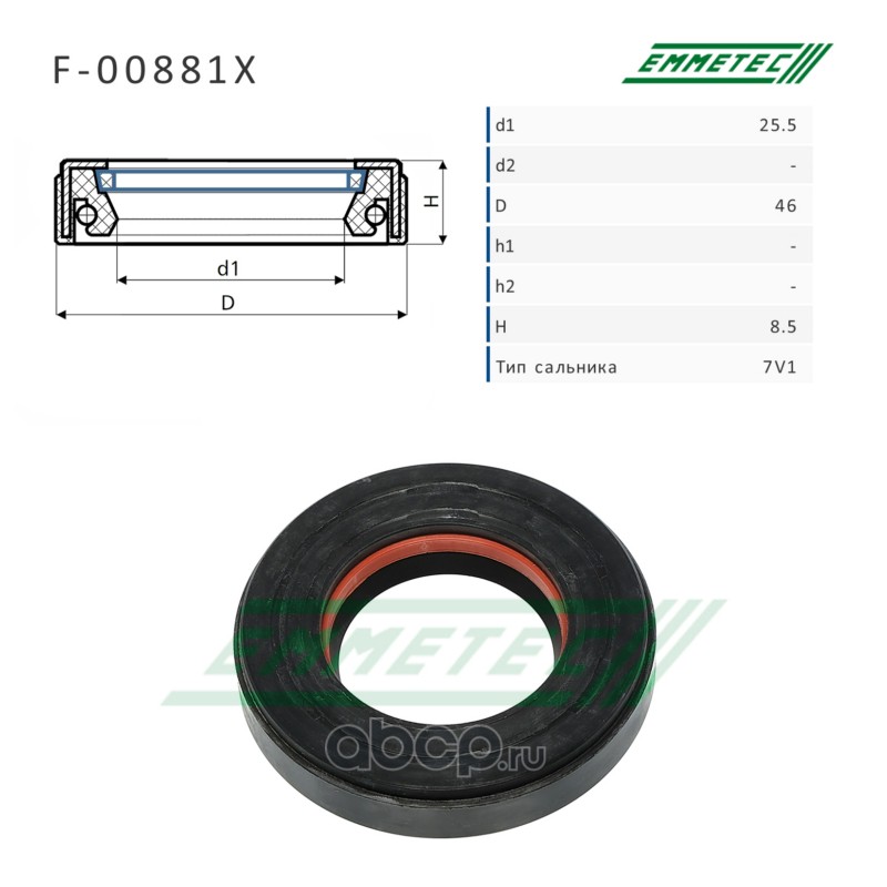 | EMMETEC | F00881X | Сальник рулевой рейки 25.5*46*8.5 (7V1) |
