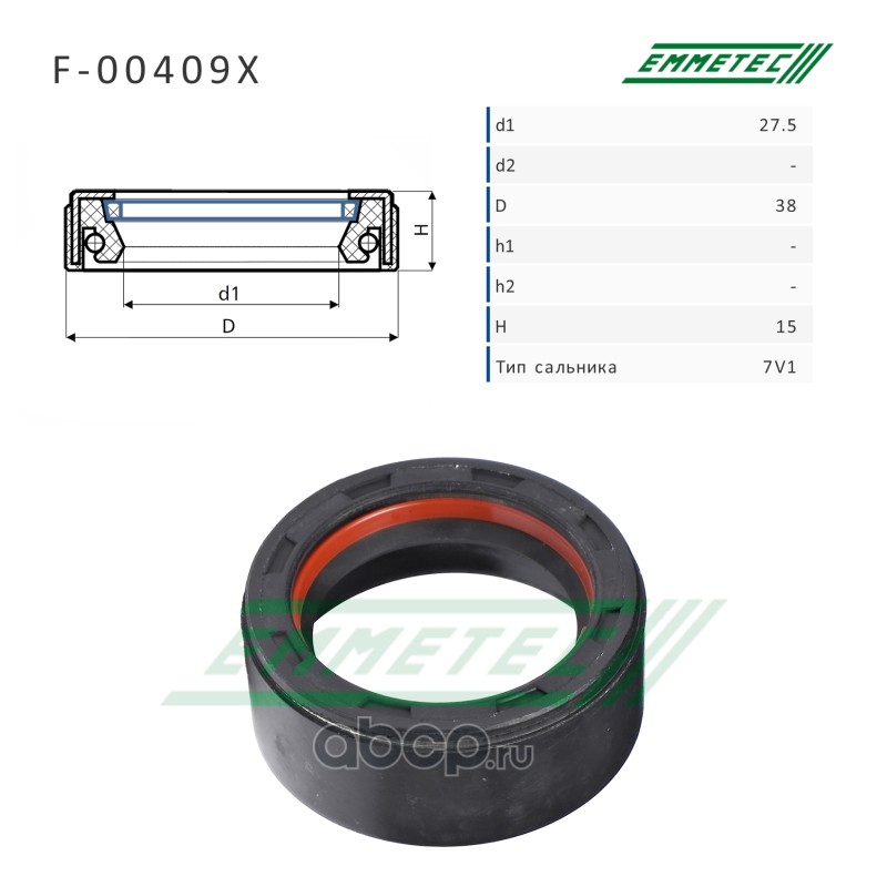 | EMMETEC | F00409X | Сальник рулевой рейки 27.5*38*15 (7V1) | ||