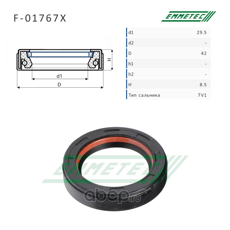| EMMETEC | F01767X | Сальник рулевой рейки 29.5*42*8.5 (7V1) |