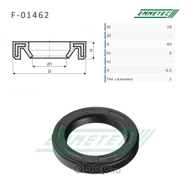 | EMMETEC | F01462 | Сальник рулевой рейки 28*40*6/6.5 (2) | ||