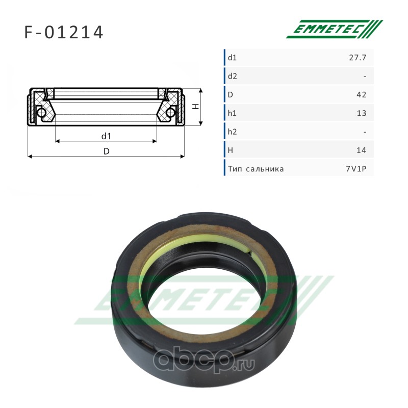 | EMMETEC | F01214 | Сальник рулевой рейки 27.7*42*13/14 (7V1P) | ||