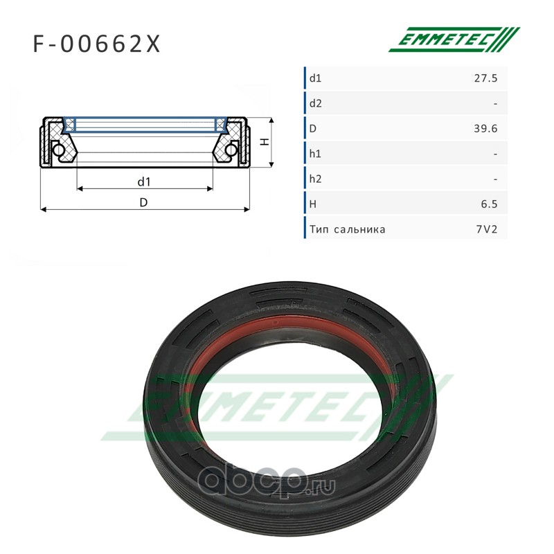 | EMMETEC | F00662X | Сальник рулевой рейки 27.5*39.6*6.5 (7V2) | ||