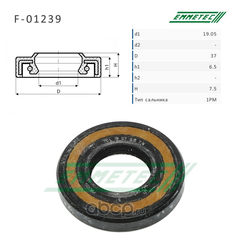 | EMMETEC | F01239 | Сальник рулевой рейки 19.05*37*6.5/7.5 (1PM) | ||