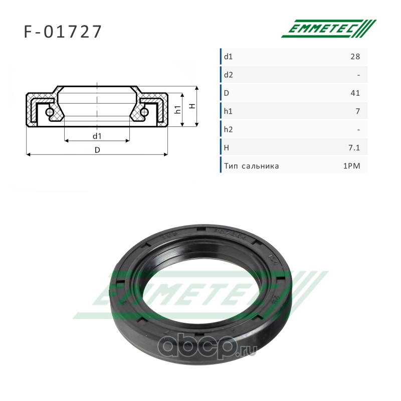 | EMMETEC | F01727 | Сальник рулевой рейки 28*41*7/7.1 (1PM) | ||