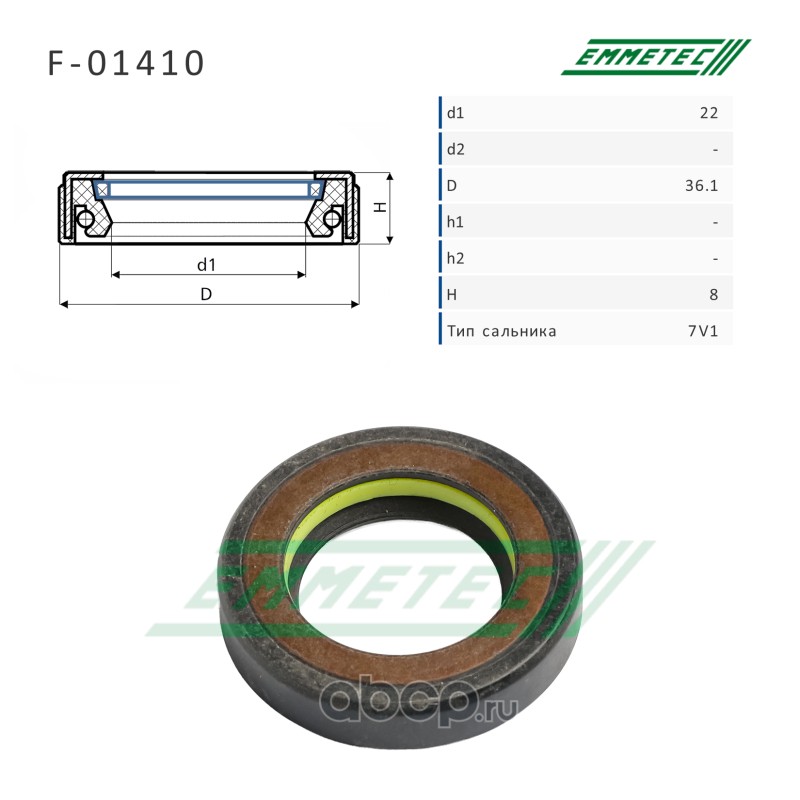 | EMMETEC | F01410 | Сальник рулевой рейки 22*36.1*8 (7V1) | ||
