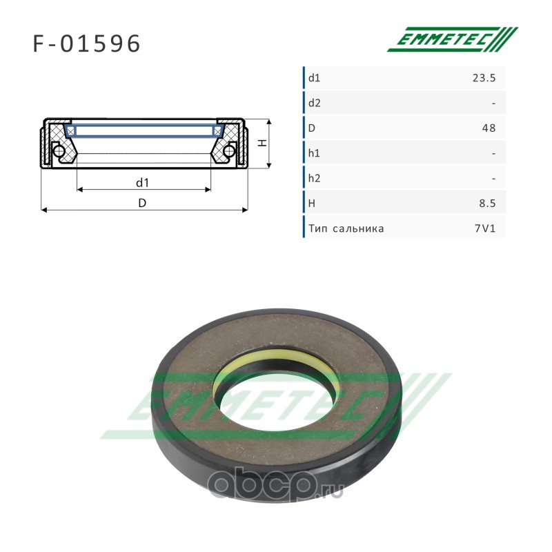 | EMMETEC | F01596 | Сальник рулевой рейки 23.5*48*8.5 (7V1) | ||