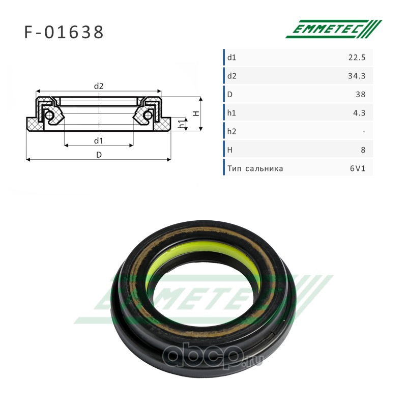 | EMMETEC | F01638 | Сальник рулевой рейки 22.5*34.3/38*4.3/8 (6V1) | ||
