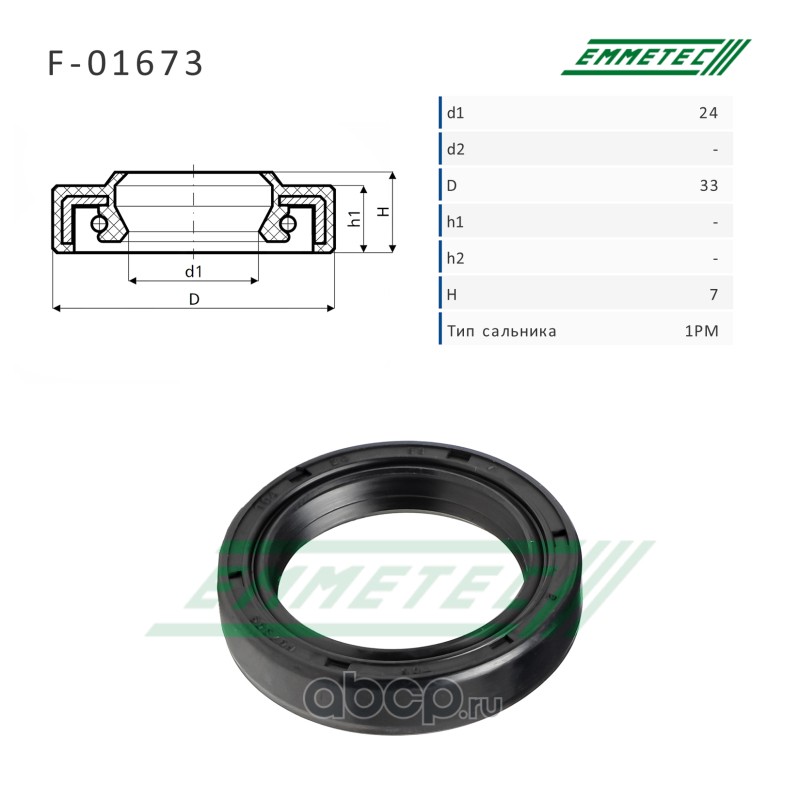 | EMMETEC | F01673 | Сальник рулевой рейки 24*33*7 (1PM) | ||