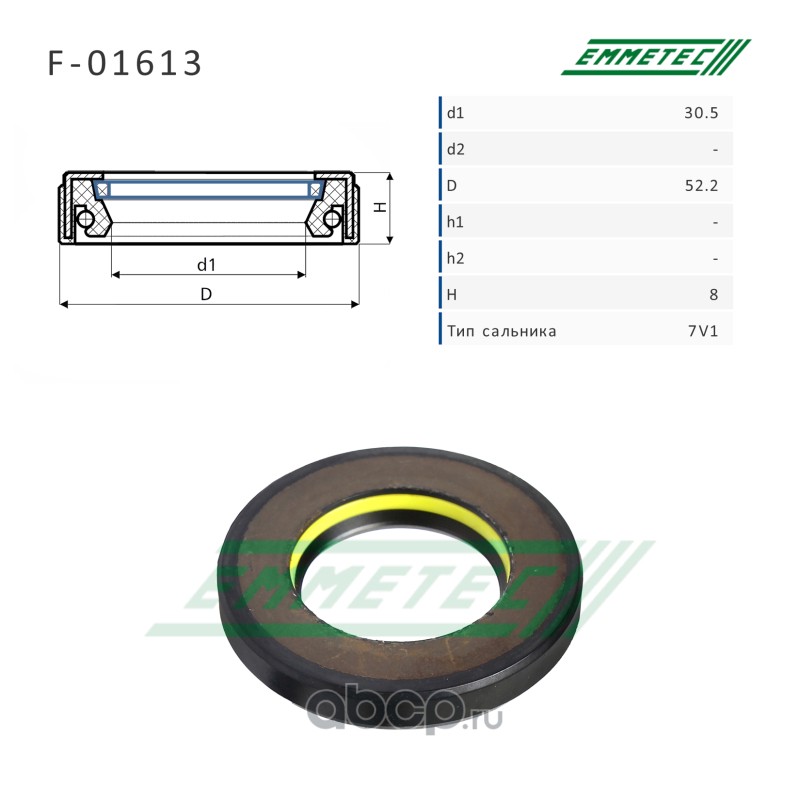 | EMMETEC | F01613 | Сальник рулевой рейки 30.5*52.2*8 (7V1) | ||