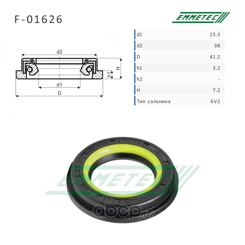 | EMMETEC | F01626 | Сальник рулевой рейки 25.3*38/41.2*3.2/7.2 (6V2) | ||
